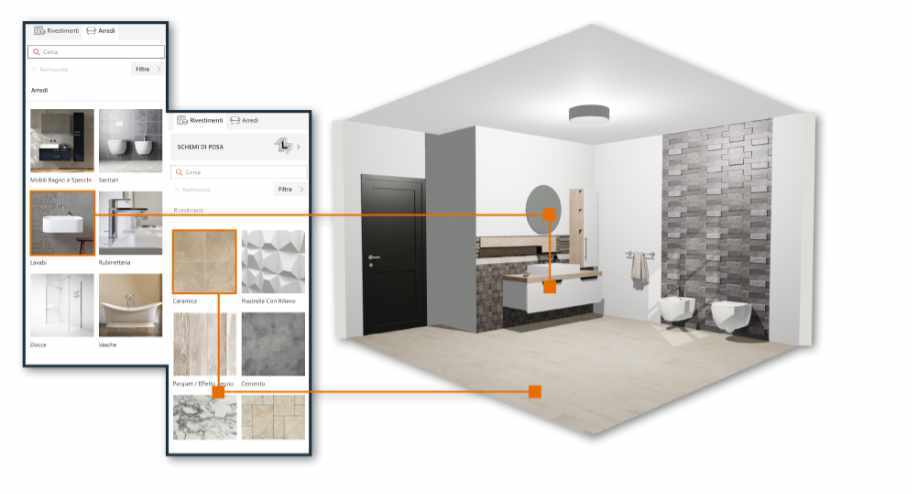 Progetta con facilità i tuoi ambienti grazie al catalogo di elementi disponibili.